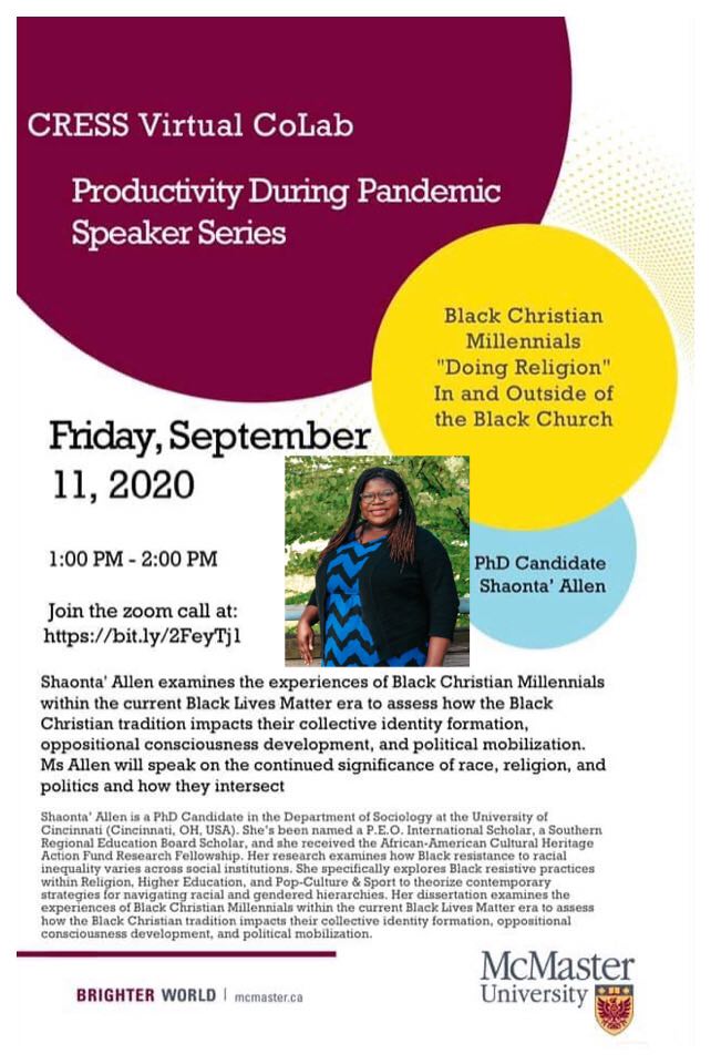 A native of Seattle, WA, I received my B.A. in Sociology & American Ethnic Studies (Concentration: African-American Studies) from the University of Washington- Seattle in 2009. I received my M.A. in Sociology and a Graduate Certificate in Women and Gender Studies from Middle Tennessee State University in 2013. I earned my PhD in Sociology at the University of Cincinnati in 2021.